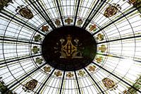 Tijdens een wandeling in het oude stadscentrum van Valencia, Spanje gingen we naar binnen in het oude postkantoor. We hielden van de gebrandschilderde koepel.