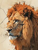 "Gebroken Majesteit" is een indrukwekkend kunstwerk dat de nobele uitstraling van een leeuw vastlegt, wiens imposante beeltenis lijkt te verschijnen door de scheuren van een verweerde muur. De aardse tinten en texturen creëren een illusie van antieke fresco's, terwijl de diepe, soulvolle ogen van de leeuw een verhaal vertellen van…