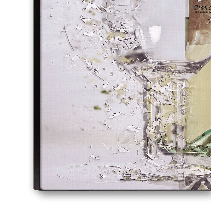 Wijnfles en glas gefotografeert in stdio om deze foto daarna te verwerken tot bekomen beeld.