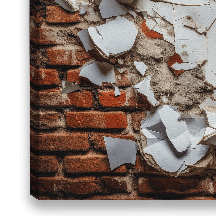 Het werk "Durchbrochene Zeit: Zerfall und Wandel" legt de fascinerende metamorfose vast van een oppervlak op het moment van verval. De muur, opgetrokken uit rode bakstenen, is voorzien van een laag witte verf die in grote, afbladderende stukken van de muur afbladdert. Dit contrast tussen de warme, robuuste textuur van de baksteen en de…