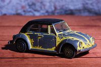 Speelgoedauto uit de 60-er jaren van de vorige eeuw. De charme is dat het speelgoed er zo heerlijk gebruikt uitziet. Studio opname.
