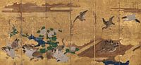 Dit is een paar zesdelige kamerschermen die door het Tokugawa shogunaat van Japan aan de koning van Joseon werden geschonken toen ze in 1748 als diplomatieke gezanten werden gestuurd. De ganzen en lotusbloemen op het scherm zijn meer decoratief dan levensecht.