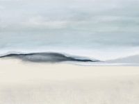 Landschap met neutrale, zachte kleuren en een rustgevende esthetiek. Aquarel en acryl op papier.
