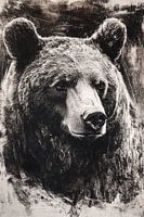 Een indrukwekkend zwart-wit portret van een beer, perfect voor liefhebbers van natuur en wilde dieren. Het kunstwerk toont met verbluffende details de diepte en textuur van de berenvacht, waardoor het bijna tastbaar lijkt. Deze hyperrealistische weergave, uitgevoerd in krachtige inktstrepen, brengt de beer tot leven en geeft een gevoel…