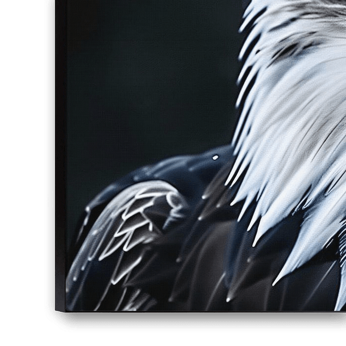 Deze verbluffende afbeelding toont een realistisch portret van een adelaar, waarbij elk detail van de veren tot de intense blik van de vogel prachtig is vastgelegd. De combinatie van zwart, wit, en accenten van geel en oranje geven het beeld een dynamische en krachtige uitstraling. Perfect voor een kantoorruimte of slaapkamer, deze afbeelding straalt kracht en schoonheid uit, en zal ongetwijfeld een opvallende toevoeging zijn aan elk interieur. Laat deze indrukwekkende adelaar uw ruimte verrijken en een gevoel van vrijheid en majesteit brengen.