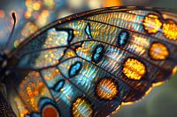 Dit indrukwekkende kunstwerk vangt de delicate schoonheid van een vlindervleugel in schitterende details en levendige kleuren. De macrofotografie onthult de complexe patronen en rijke texturen, waar gouden en blauwe tinten samenkomen in een betoverend samenspel van licht. Deze afbeelding is perfect voor iedereen die een vleugje natuur en kleur in hun interieur wil brengen. Het subtiele, maar krachtige ontwerp straalt energie en elegantie uit, waardoor het een uitstekende keuze is voor moderne woonruimtes, kantoren of slaapkamers. Laat u inspireren door de magische details van de natuur met dit unieke kunstwerk.