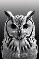 Deze opvallende afbeelding toont een prachtige, hyperrealistische uil in zwart-wit. Elk detail van de uil is zorgvuldig uitgewerkt, van de scherpe veren tot de doordringende ogen. Het contrast van de witte en zwarte tinten geeft de uil een mystieke uitstraling, waardoor hij perfect in moderne interieurs past. Deze afbeelding kan een stijlvolle toevoeging zijn aan elke ruimte, vooral in kantoren of woonkamers waar het ontwerp een gevoel van rust en elegantie kan oproepen. Dit kunstwerk is niet alleen een eerbetoon aan de natuurlijke schoonheid van het dier, maar het creëert ook een visueel rustpunt in elk interieur. Voeg deze uil toe aan je decor voor een elegante en unieke uitstraling.
