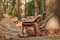 Uit hout gesneden religieus kunstwerk van Omer Geillet in eigendom.