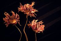 Gedroogde Gerbera's in warm herfst licht.Gedroogde bloemen in mysterieus warm licht. Bloemenkunst