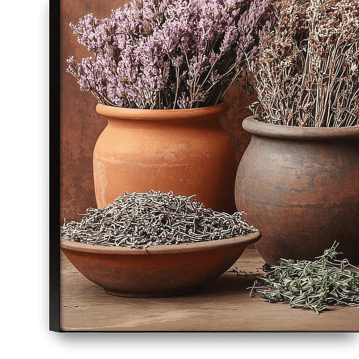 Koop dit landschapskunstwerk Gedroogde kruiden in aardewerk potten van Imperial Art House op canvas, aluminium dibond, (ingelijste) fotoprint, behang en ArtFrame, op maat geprint in Fine-Art kwaliteit.