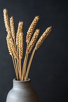 Deze prachtige compositie van gedroogde tarwe in een strakke, matte keramische vaas straalt rust en eenvoud uit. Het monochrome kleurenpalet, gecombineerd met het minimalistische ontwerp, maakt dit kunstwerk perfect voor moderne interieurs. Het zachte, natuurlijke bruin van de tarwe steekt mooi af tegen de grijze vaas, waardoor het een kalmerende en stijlvolle toevoeging is aan elke ruimte. Ideaal voor in een kantoor of slaapkamer, het brengt een vleugje natuur binnen en zorgt voor een serene sfeer. Dit decoratieve stuk past goed bij verschillende stijlen, van Japandi tot minimalistisch.