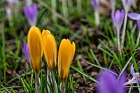 Voor mij vormen de gele krokussen een heel mooi contrast tussen groen, wit en paars, wat meestal de dominante kleuren zijn bij krokussen. Des te mooier zijn de uitschieters! Deze heb ik ook vastgelegd in Schadaupark (Thun, Zwitserland).