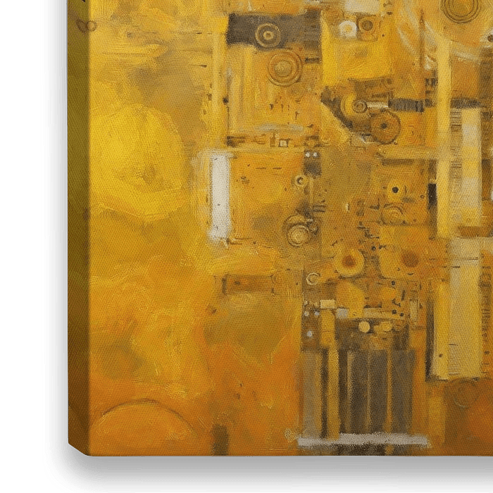 Dit werk combineert levendige gele tinten met diverse abstracte patronen. De centrale structuur bevat cirkelvormige en geometrische elementen, die samen een dynamisch en intrigerend geheel vormen. Het contrast tussen de felle gele achtergrond en de donkere accenten zorgt voor een boeiende visuele ervaring. Dit werk is een opvallende…
