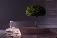 Intrigerende Foto van Vrouw met Knot en Uil - Mysterie en SymboliekElianne van Turennout Surrealistische Foto van Man op Schommel in Mist - Vrijheid en Mysterie WanddecoratieElianne van Turennout
