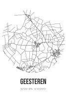 Zwart-witte landkaart, stratenplan of plattegrond van Geesteren. Geesteren is gelegen in Twente, in de gemeente Tubbergen, provincie Overijssel. Op de stadskaart zijn alle openbare wegen in Geesteren opgenomen. Verder is de kaart voorzien van de coördinaten van het centrum van Geesteren.
