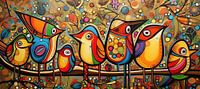 Details: vogels, abstract, kleurrijk, schilderij, kunst, modern, vrolijk, natuur, dieren, decoratie
