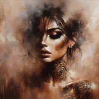 "Gegraveerd in Tijd" is een indrukwekkend olieverfwerk dat de ziel van een getatoeëerde vrouw vastlegt in ruige, aardse tinten. De krachtige penseelstreken en diepe bruintinten brengen haar mysterie en emotie tot leven, terwijl de inkt op haar huid fluistert over verleden en identiteit. Dit werk is een eerbetoon aan kracht, kwetsbaarheid en de verhalen die wij op onze huid dragen.