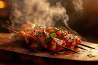 Sappige spiesjes, gewikkeld in pittige rook, geven elke kamer een feestelijke flair. De felle kleuren en verleidelijke aroma's nodigen uit tot gezellige kookavonden. Ideaal voor in de keuken of eetkamer, waar de geur van vers bereide lekkernijen de harten sneller doet kloppen. Een beeld dat plezier en gezelligheid belichaamt.