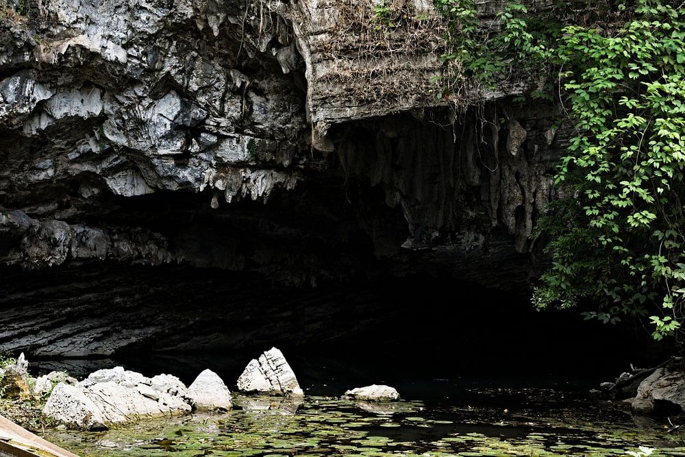 De Tham Nong Pa Fa grot ligt verscholen in de jungle bij Thakhek en lijkt verborgen in het landschap. Een houten pirogue rust rustig uit op het groenige water bedekt met waterlelies, voor een donkere opening in de kalkstenen rots. Deze mysterieuze ingang leidt naar een verborgen heiligdom, ontdekt in 2004, met meer dan 200 bronzen Boeddhabeelden. Omgeven door weelderige vegetatie en gemarkeerd door hangende gebedsvlaggen, roept het tafereel een spirituele en bijna magische sfeer op. Het is een plek waar stilte heerst en die uitnodigt tot contemplatie, innerlijke ontdekking en verwondering.