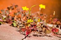 Een stukje stadsnatuur op de vierkante centimeter: oxalis corniculata oftewel gehoornde klaverzuring. Een eenjarig plantje dat bloeit van mei tot oktober en dat zich helemaal op zijn plek voelt tussen straatklinkers en in andere stedelijke milieus.