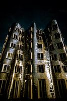 Gehry gebouwen in Düsseldorf Media Harbour Duitsland in de avond