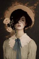 Geïllustreerd portret "Romance". Portret van een meisje / jonge vrouw in romantische kleding in combinatie met rozen. Sfeervol en in pastelkleuren.