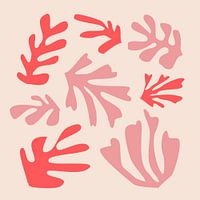 Geïnspireerd door Henri Matisse, wil ik u een prachtig natuurblad, koraal en zeewier schilderij voorstellen met abstracte vormen in roze en roos op een beige achtergrond.