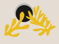 Geïnspireerd door Henri Matisse, wil ik u een prachtig natuurbladschilderij voorstellen met mosterdgele bladvormen op een crème-beige achtergrond.