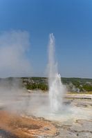 Het park heeft ongeveer 10.000 warmwaterbronnen en meer dan 200 geisers in het Upper Geyser Basin, waarvan Old Faithful de beroemdste is. Deze geiser spuit om de 45 à 125 minuten, gemiddeld om de 92 minuten, een 45 meter hoge kolom van water en stoom omhoog. Sommige andere beroemde geisers spuiten maar eens per 6 tot 8 maanden en er zijn geisers die al jaren niet meer gespoten hebben.