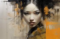 Dit intrigerende digitale kunstwerk belichaamt de mystieke blik van een Geisha, omringd door een abstracte compositie van goud en schaduw. Het schilderij speelt met de balans tussen licht en donker, het traditionele en het moderne, waarbij de subtiele kracht van de Geisha naar voren komt tegen een achtergrond van ruwe, stedelijke texturen. De inspiratie komt voort uit de tijdloze schoonheid van de Geisha, een symbool van gratie en kracht, hier geplaatst binnen het kader van een hedendaagse kunststroming. De sfeer is een samenspel van verwondering en diepgang, waarin elke penseelstreek zowel een verhaal vertelt als een emotie oproept. Dit stuk gaat over transitie en weerstand, over de schoonheid die blijft bestaan ondanks de veranderende wereld om haar heen. De techniek maakt gebruik van digitale lagen en textuureffecten om een gevoel van beweging en leven te creëren, waardoor het kunstwerk een fascinerende toevoeging is voor elk interieur dat waarde hecht aan zowel artistieke finesse als aan culturele diepte.
