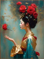 Koop dit schilderij Geisha in bloom van Jolique Arte als reproductie op canvas, aluminium dibond, (ingelijste) fotoprint, behang en ArtFrame, op maat geprint in Fine-Art kwaliteit.