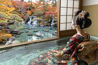Digitaal beeld van schilderachtig Japan met fictief landschap of persoon