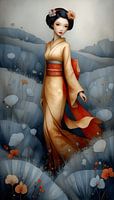 In Geisha in stilte ontmoeten tijd en schoonheid elkaar in een betoverend samenspel van kleur, vorm en emotie. Dit unieke kunstwerk is een ode aan de subtiliteit van het moment – een stille dialoog tussen mens en natuur.