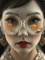 Stap in een droomwereld waar traditie en fantasie elkaar ontmoeten. Dit surrealistische schilderij toont een Japanse geisha met een mysterieus serene uitstraling. Wat direct in het oog springt, is haar gigantische bril, die fungeert als een mini-aquarium. In elk glas zwemmen twee levendige goudvissen, gedetailleerd geschilderd met een…