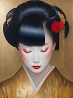 Dit prachtige schilderij vangt de tijdloze schoonheid van een geisha in traditionele Japanse klederdracht. Met zorgvuldige aandacht voor details en rijke kleuren brengt de kunstenaar de delicate stoffen, verfijnde haardracht en serene uitstraling van de geisha tot leven. Het kunstwerk straalt elegantie en rust uit, en vormt een sfeervolle toevoeging aan elk interieur. Perfect voor verzamelaars van Japanse kunst of liefhebbers van culturele en esthetische schoonheid.