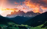 Zonsopgang boven de Geisler Groep in de Dolomieten