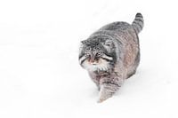 Koop de foto Geïsoleerd op witte sneeuw achtergrond. Ernstige, wrede, pluizige, wilde kattenmanoeuvre op witte sn van Michael Semenov op canvas, aluminium dibond, (ingelijste) fotoprint, behang en ArtFrame, op maat geprint in Fine-Art kwaliteit.