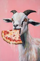 Over ‘Geit die pizza eet op roze achtergrond’ van Poster Art Shop