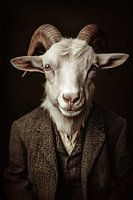 Koop dit portret Geit in kleding van Bert Nijholt op canvas, aluminium dibond, (ingelijste) fotoprint, behang en ArtFrame, op maat geprint in Fine-Art kwaliteit.