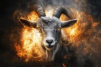 Deze afbeelding toont een indrukwekkende geit met vurige ogen, omringd door een dramatisch vlammen-effect. Het ontwerp straalt kracht en mysterie uit, perfect voor wie een gedurfd kunstwerk zoekt dat de aandacht trekt. De realistische details in de vacht en hoorns brengen de geit tot leven, terwijl de vurige omlijsting een gevoel van energie en kracht toevoegt. Dit stuk past goed in een moderne kantoorruimte of slaapkamer, waar het kan fungeren als een krachtige blikvanger. Een visueel spektakel dat elke ruimte een unieke sfeer geeft.