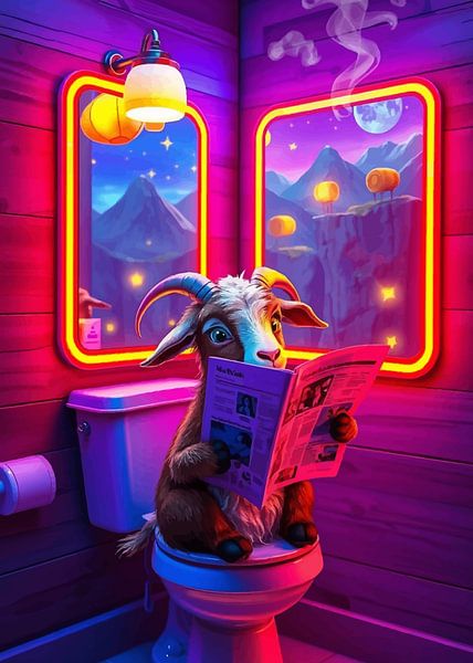 Deze illustratie laat een geit zien die rustig zit met een krant in de hand, waardoor een landelijk karakter wordt vermengd met een humoristisch, menselijk moment. De expressieve houding en gerichte aandacht van de geit creëren een speels contrast dat het kunstwerk direct boeiend maakt. De illustratiestijl houdt de scène licht en…
