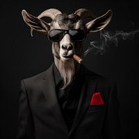Geit met sigaar en zonnebril schilderij die een prachtige luxe toevoeging zal zijn aan elke ruimte. Met zijn unieke en stijlvolle uitstraling is het een ware eyecatcher. De schitterende kleuren en het bijzondere ontwerp maken dit kunstwerk 100% uniek en origineel. Het is de perfecte fotoprint om je interieur helemaal af te maken.