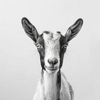 Dit indrukwekkende zwart-wit portret van een geit legt de karakteristieke gezichtsuitdrukkingen en opvallende kenmerken van het dier perfect vast. De fijne details van de vacht en de intense ogen geven de foto een speciale diepte en aanwezigheid. Dit kunstwerk is ideaal voor natuurliefhebbers en kunstliefhebbers en geeft je woon- of werkruimte een charmant en rustiek tintje.