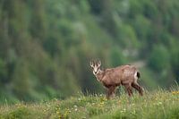 Geiten ( Rupicapra rupicapra ) grazend op een kruidenweide in de bergen, widlife, Europa.