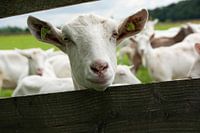 Ergens op een landgoed stond een kudde geiten. Ze waren heel nieuwsgieren en wilde maar al te graag poseren voor de fotograaf.