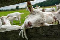 Ergens op een landgoed stond een kudde geiten. Ze waren heel nieuwsgieren en wilde maar al te graag poseren voor de fotograaf.