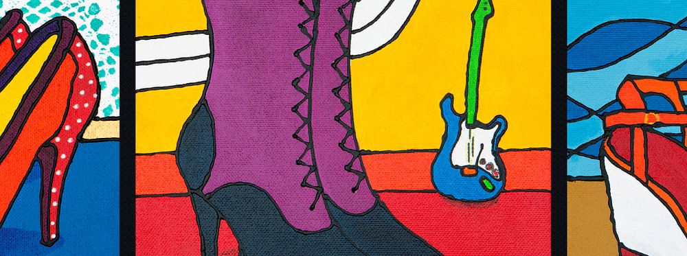 Elke vrouw is gek op schoenen. We love it! Voor elke gelegenheid, voor elk weertype, en voor elke gemoedstoestand willen we andere schoenen. Bij elk jurkje, bij elke broek een ander paar. We willen elke kleur. Elk materiaal. En elke hakhoogte. Hier een collage van 3 schilderijen van mijn favoriete schoenen. Pumps, netjes en zakelijk, maar toch met een excentriek tintje, rijglaarsjes voor de rock-chick en espadrilles voor de beach-babe.