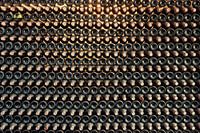 Honderden wijnflessen in rijen tentoongesteld in een winkel van een wijnhuis in Spanje