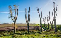In het buitengebied van het Zuid-Hollandse dorp Numansdorp vlakbij de Veerweg is een rij bomen gekandelaberd. Kandelaberen is een weinig gebruikte en nogal drastische snoeitechniek waarbij alleen de stam en de dikke takstompen overblijven. De vorm van het resterende deel heeft wel wat weg van een kandelaar. Veelal is een vergunning van de plaatselijke gemeente vereist. De foto is gemaakt op een zonnige ochtend in de herfst. Naast de dijk rechts ligt het Hollands Diep.