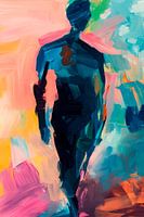 Een mysterieus silhouet met een blik in de diepte van kleur, waar zachte roze tinten en sterk donkerblauw elkaar ontmoeten. Deze indrukwekkende omtrek creëert een sfeer van rust en reflectie. Ideaal voor de slaapkamer om een rustgevende stemming te creëren of voor de woonkamer om gesprekken over kunst en het leven te stimuleren.